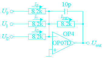 The next figure shows the circuit which add the signals from the P-, I and the D-component. In the following ignore the 10 p capacitor.